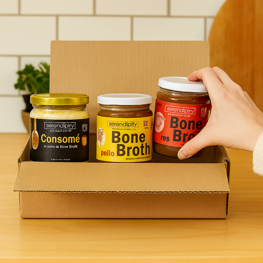Mix & Sip Box – Caja Variada de Caldos de Huesos Serendipity (Pollo, Res, Pavo, Wagyu y Consomé)Precio habitual $ 1,900.00 MXNPrecio habitualPrecio unitario por-