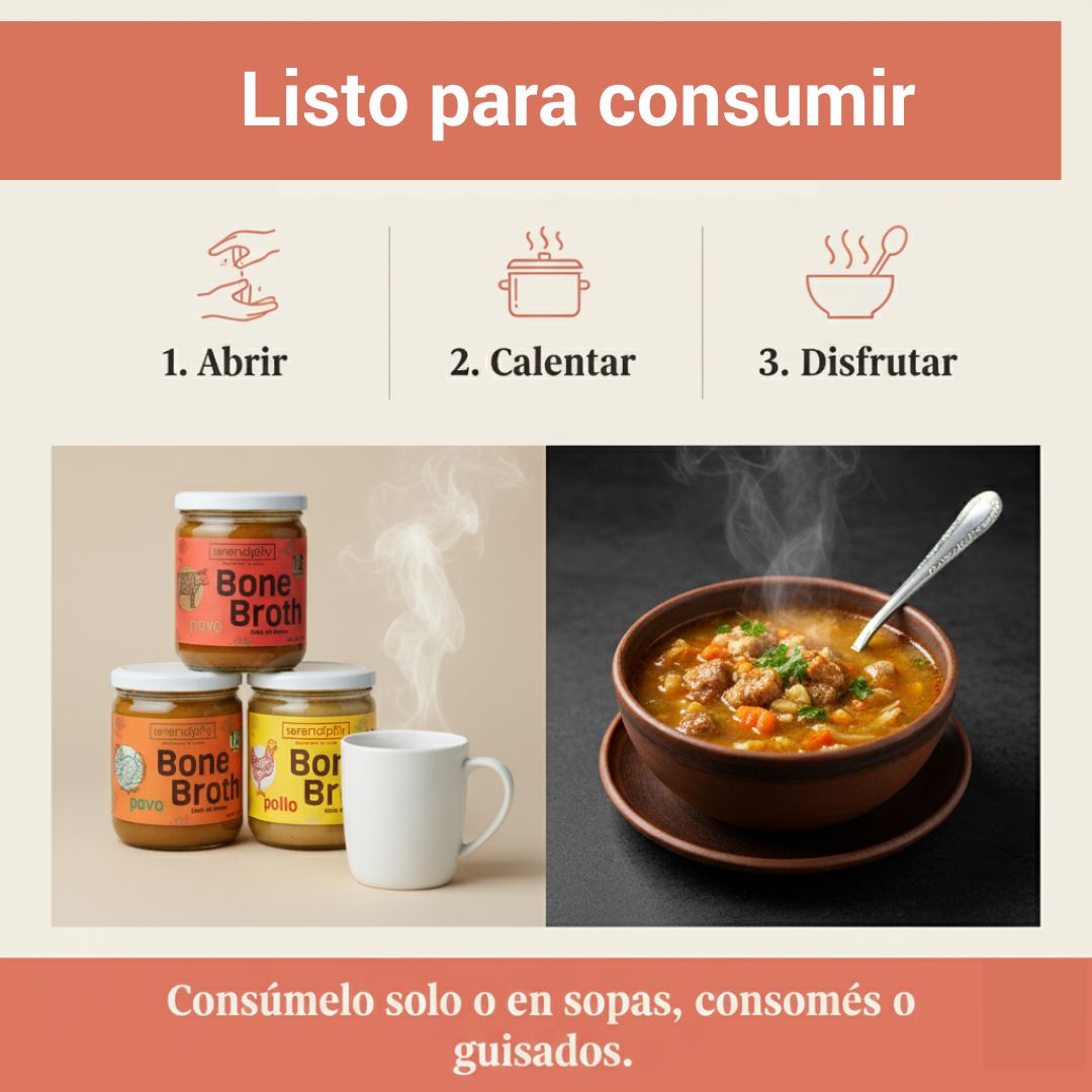 🔥 Cocinado lentamente hasta 24 horas para extraer colágeno natural, minerales y aminoácidos esenciales.
